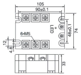 四. 三相固态继电器外形尺寸和安装接线图:(单位:mm)